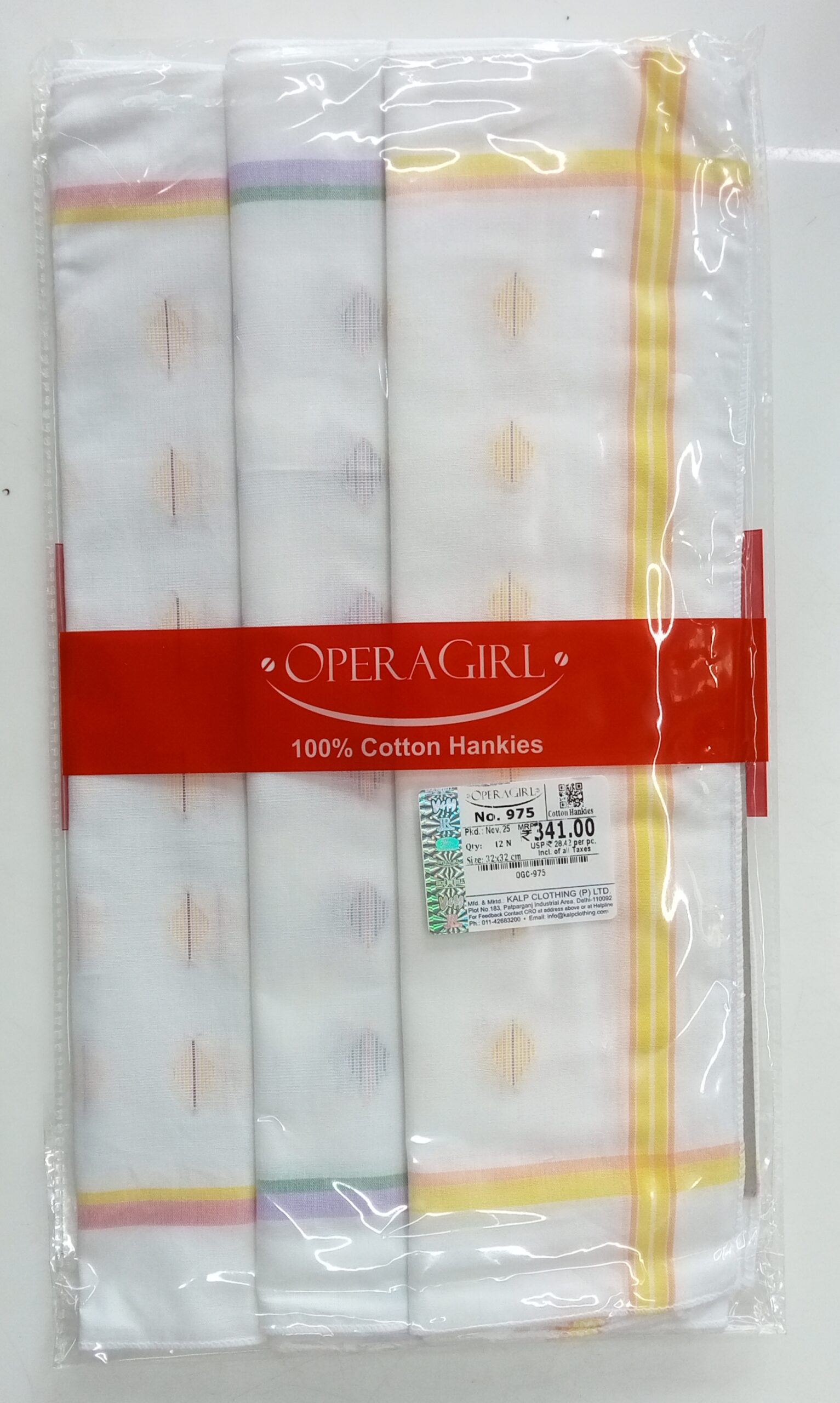 Operagirl Women Handkerchiefs White with Booty (Pack of 12)